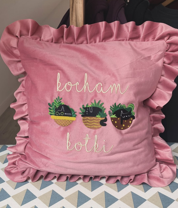 Poduszka z haftem „Trzy kotki”